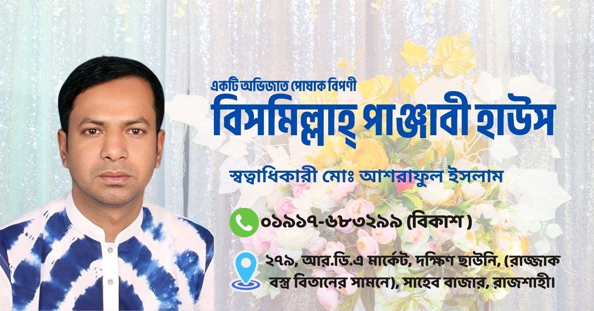 নিজস্ব প্রতিবেদক, রাজশাহী রাজশাহীর কেনাকাটার কেন্দ্রবিন্দু সাহেব বাজার এখন উৎসবের আমেজে মুখরিত। বিশেষ করে আসন্ন পবিত্র ঈদুল ফিতর এবং বর্তমান বিয়ের মৌসুমকে সামনে রেখে পাঞ্জাবীর বাজারে ক্রেতাদের পছন্দের শীর্ষে জায়গা করে নিয়েছে আর.ডি.এ মার্কেটের অন্যতম বিশ্বস্ত প্রতিষ্ঠান ‘বিসমিল্লাহ্ পাঞ্জাবী হাউস’। আভিজাত্য এবং গুণগত মানের সমন্বয়ে প্রতিটি পোশাককে এখানে শিল্পের রূপ দেওয়া হয়েছে।